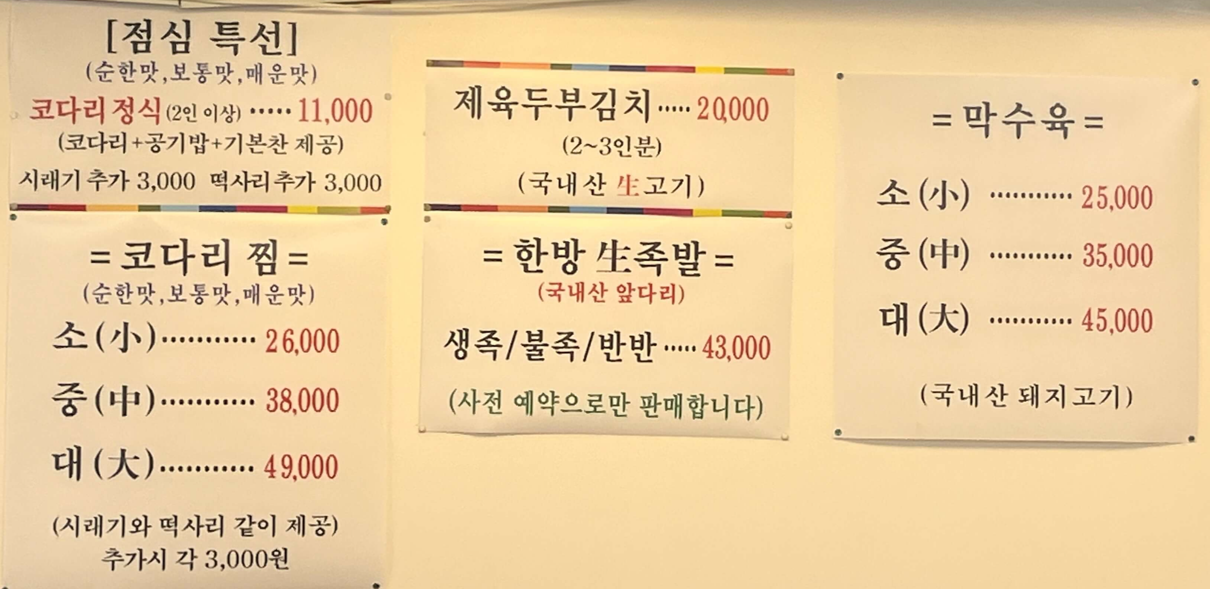 가장 인기 있는 메뉴는 단연 코다리찜 입니다.